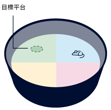 水迷宮行為測試實驗:正常認知功能的小鼠,可以記住目標平台位置,安全上岸。