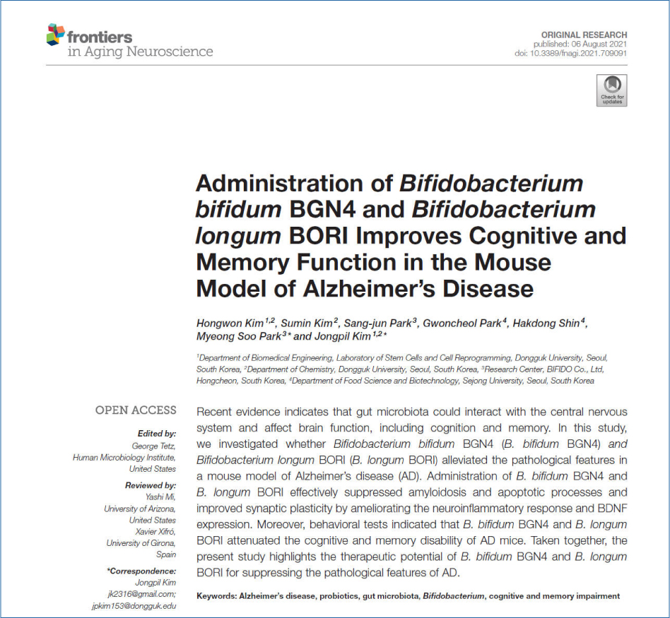 韓國最高學府-國立首爾大學在知名牛津 Oxford 期刊發表 ProbiozzZ® BGN4 及 BORI 兩株專利「舒眠菌」Psychobiotics 精神益生菌株透過腦腸軸系統 (Gut-brain Axis) 產生顯著舒緩情緒作用。