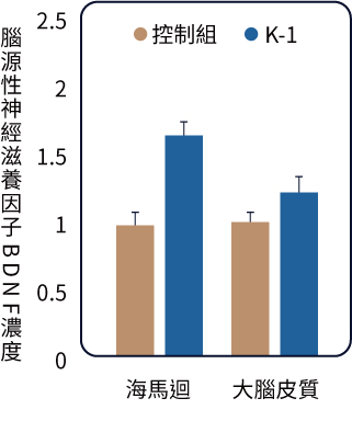 BDNF 在腦部可調控神經元(神經細胞)的生長、促進突觸形成,亦可調節神經傳導物質及細胞內的訊息傳遞。
